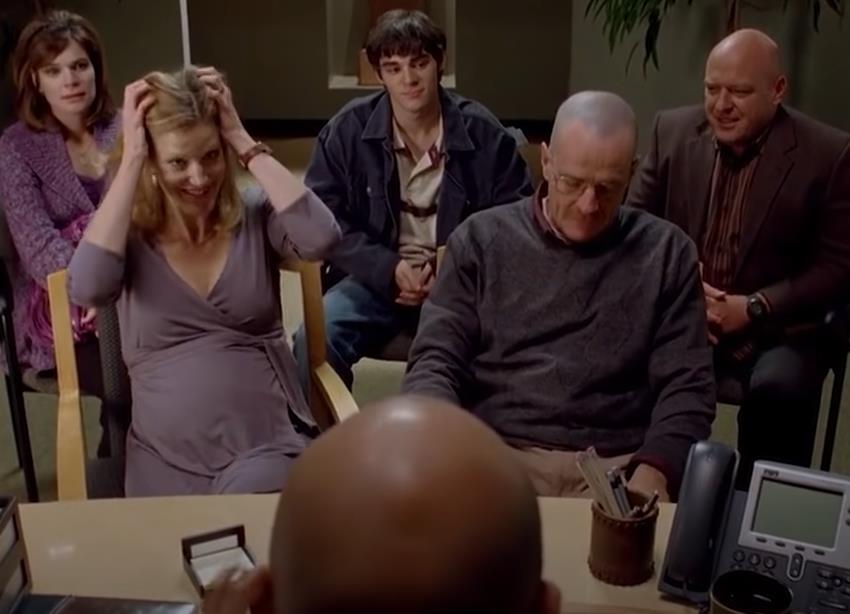브래이킹 배드 시즌1에서 월터가 암에 걸렸다는 사실을 두 가족들 앞에서 월터의 아내 스카일러가 밝히자