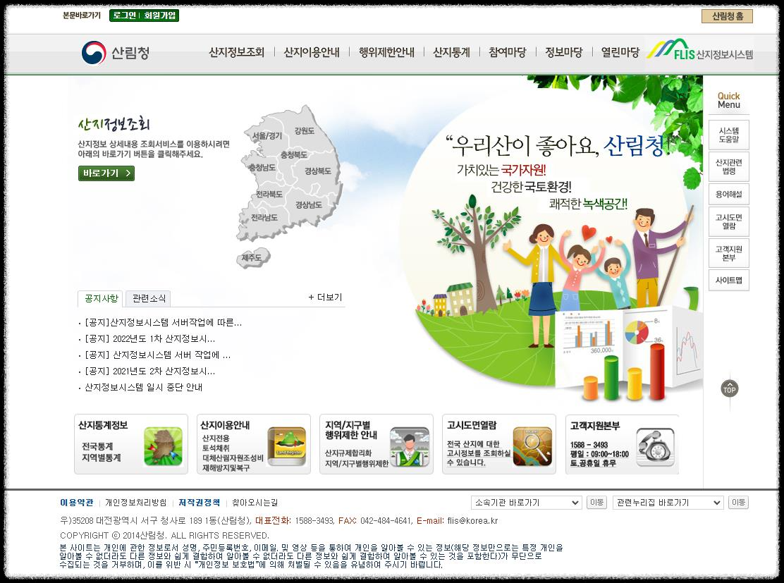 바로 산림청에서 운영하는 산지정보시스템에서 확인할 수 있습니다.