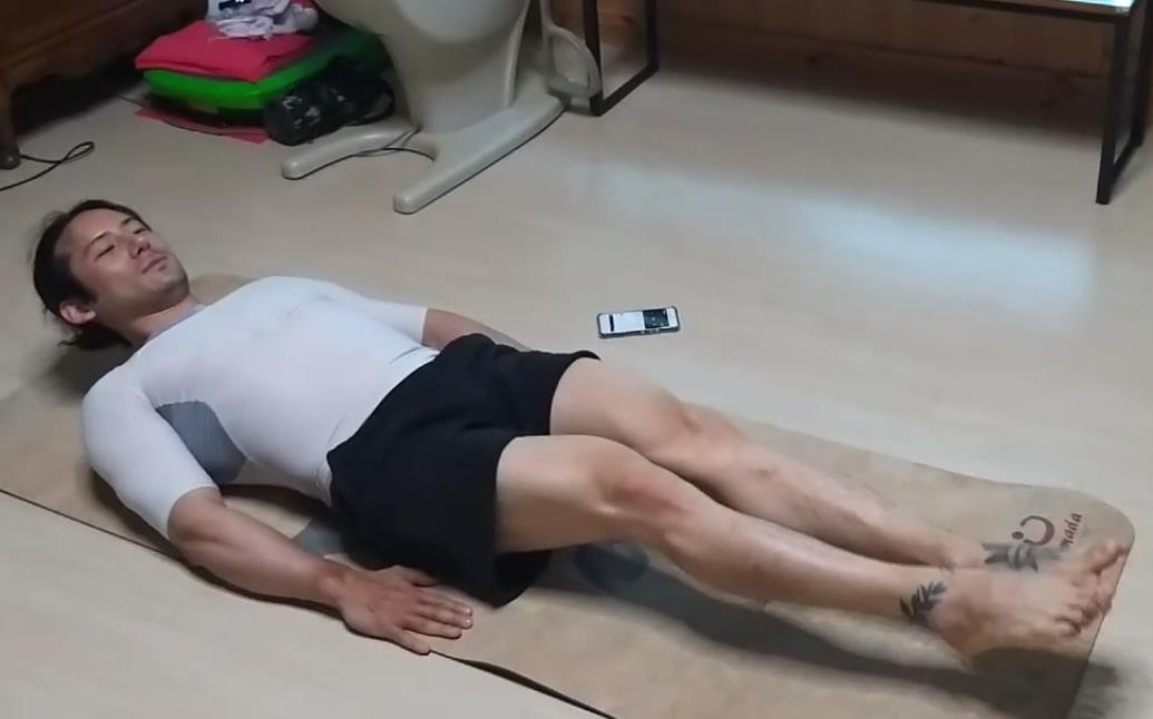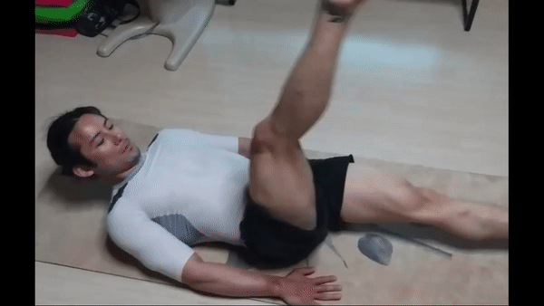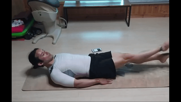 위 2번째 뱃살빼기운동(다리펴고 가로젓기) 운동을 마친후,