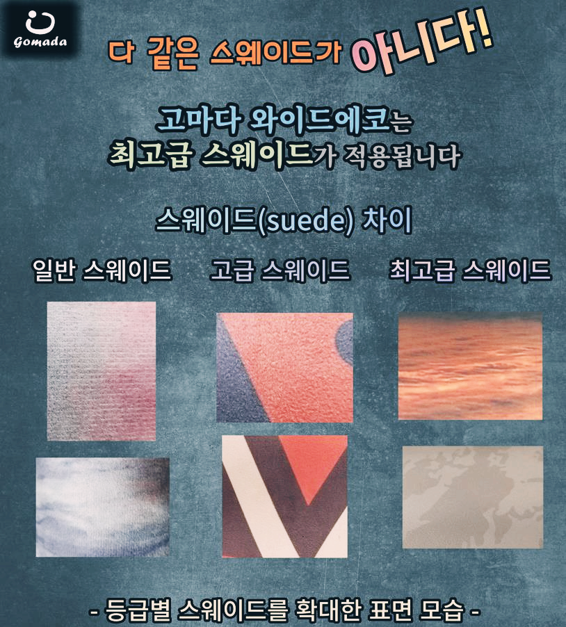 고마다 와이드에코 고급 요가매트는 표면이 털이 아닌 스웨이드로 되어있어