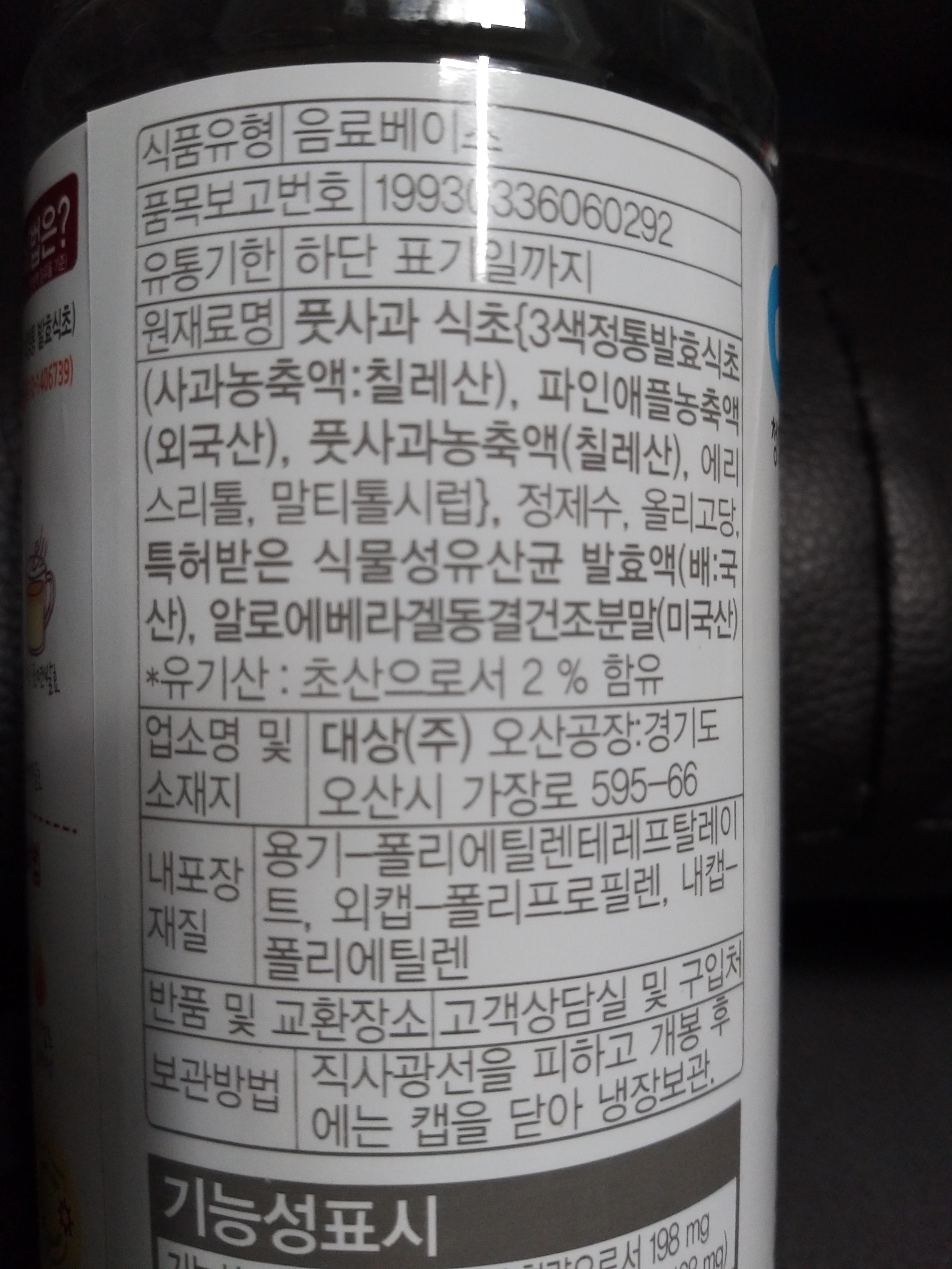 유기산(초산)도, 2% 함유되어 있다면 몸에 좋은 건강 식초는 맞는거 같습니다.