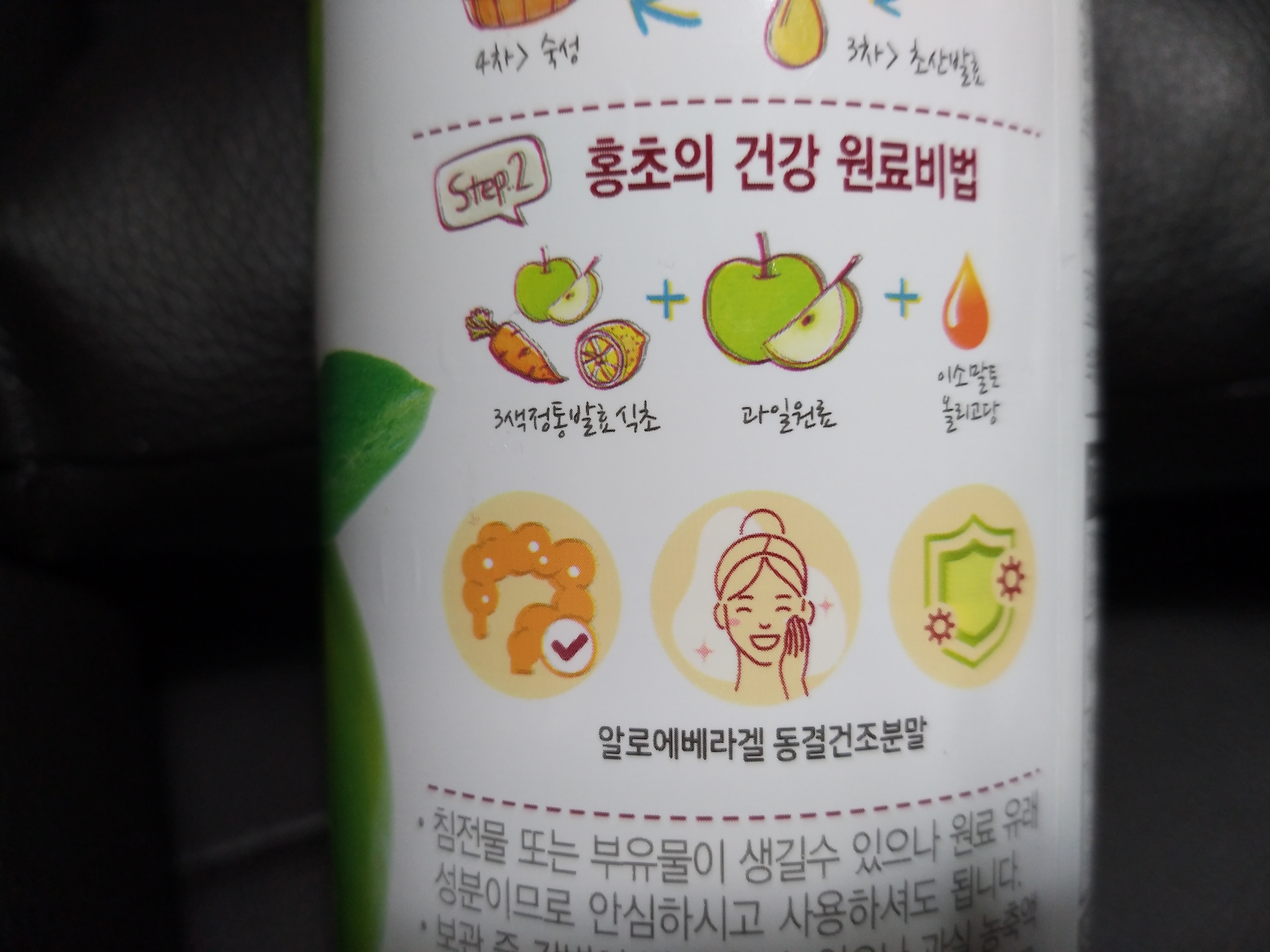 그 아래있는 스텝 2의 홍초 건강 원료 비법은 그냥 청가물을 설명해 주는 거 같습니다.