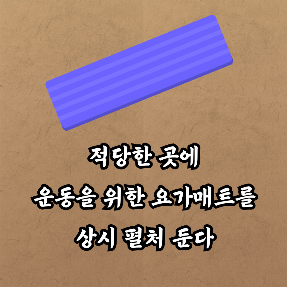1 방에 요가매트 (운동매트) 하나를 상시 펼처 둡니다.