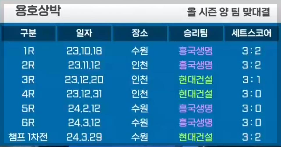이때 승리팀은 도로공사였고, 도로공사는 플레이오프전 경기를 하고 왔기 때문에 지금의 흥국생명과