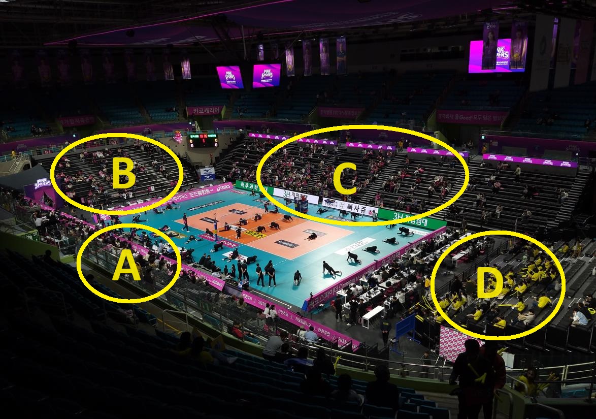 D구역에서 홈팀인 흥국생명팀을 응원하면 엄청난 비난을 받을 수 있으니 조심하고,