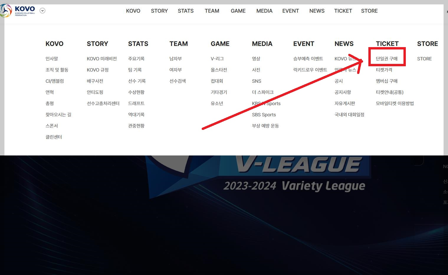 한국배구연맹(KOVO)에 들어가서, 구매하면 됩니다.