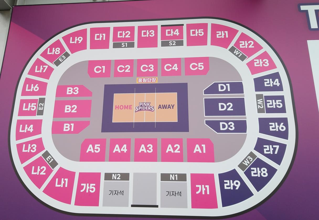 그럼 바로 흥국생명 여자배구단 홈구장인 인천 삼산 월드 체육관 좌석별 안내를 시작합니다.