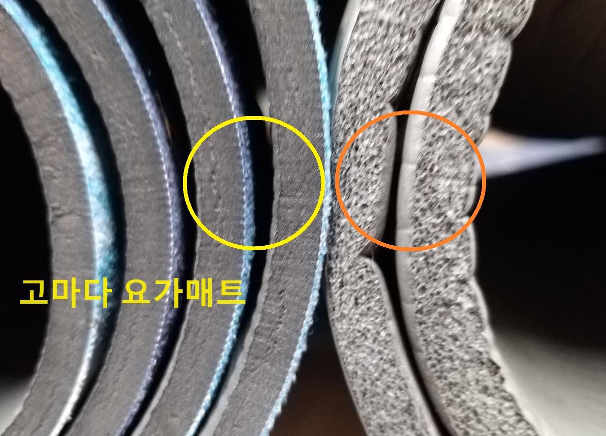왼쪽이 고마다 매트 밀도를 비교해 알 수 있습니다.