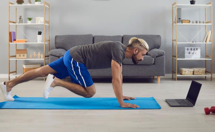 다양한 맨몸 운동, 스트레칭, 다운독 자세, 팔굽혀펴기. 윗몸 일으키기 ,